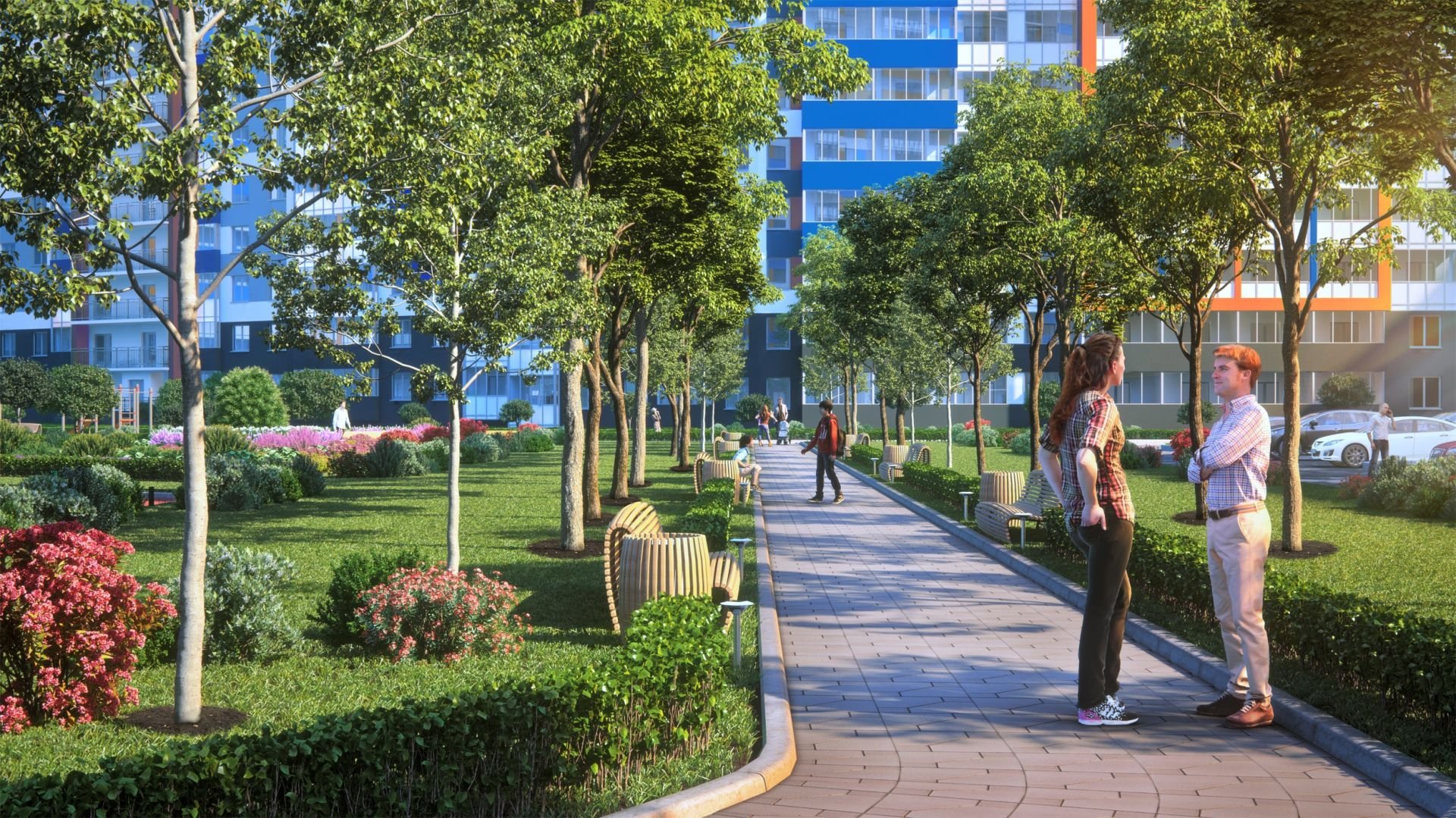 В жилом комплексе «Елизаровский» реализована концепция «двор без машин»: въезд будет разрешен только для спецтранспорта, а все парковочные места вынесены за внешний периметр комплекса.