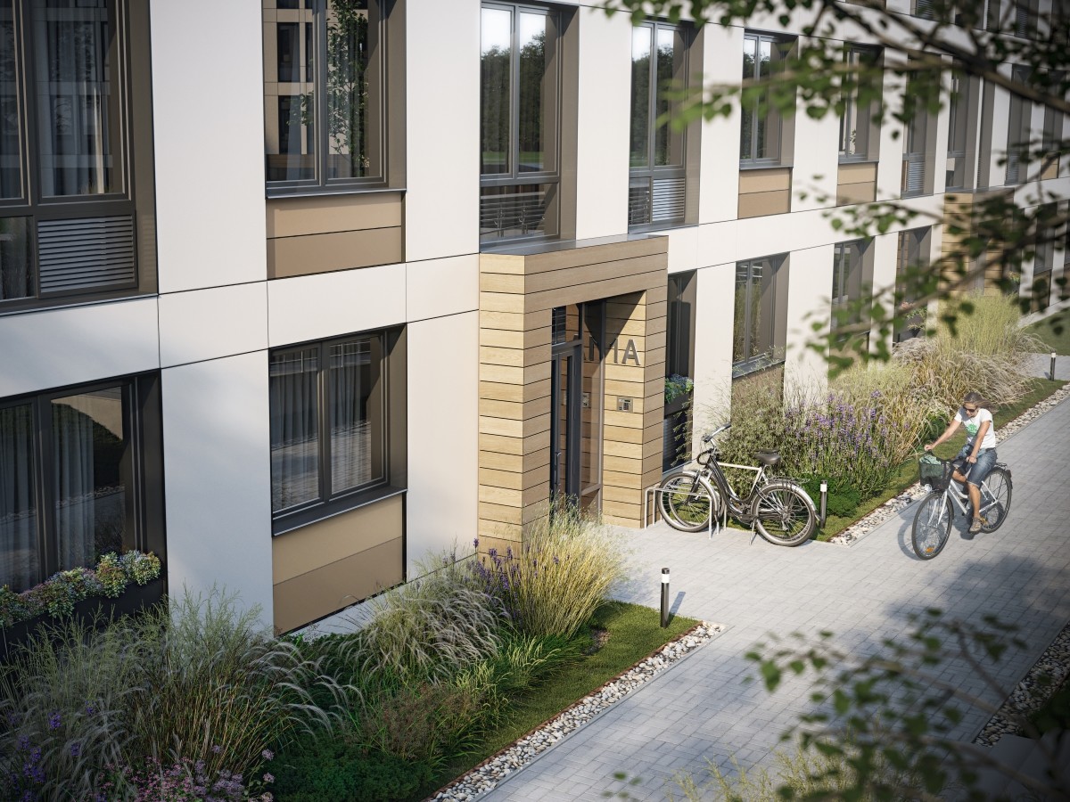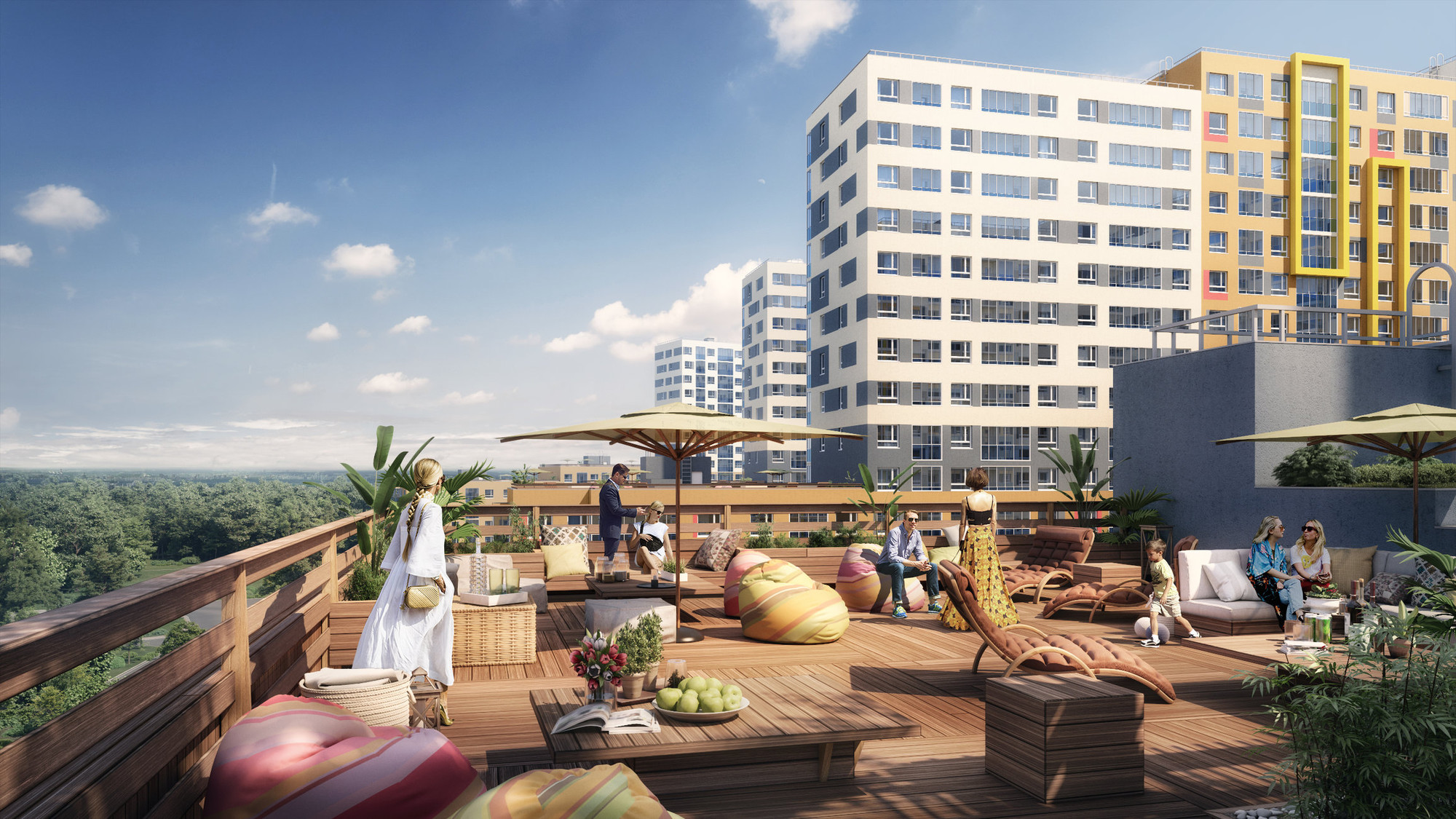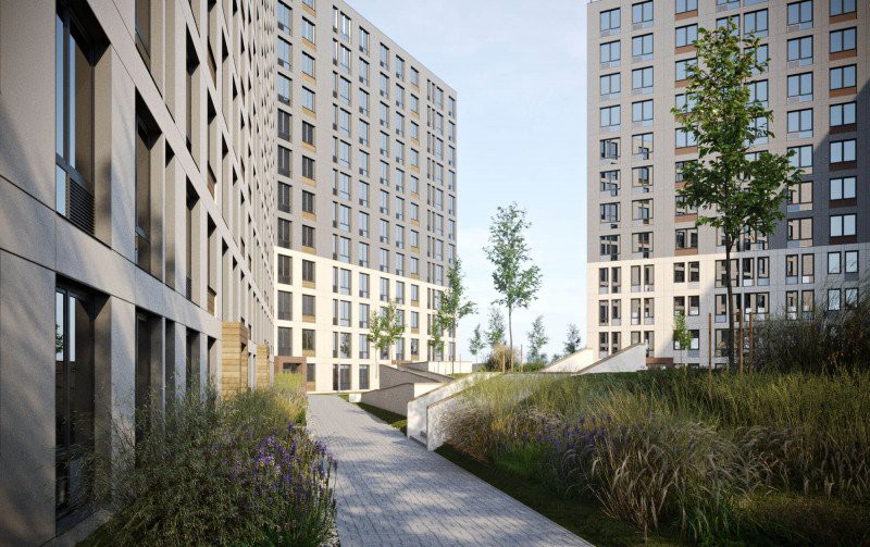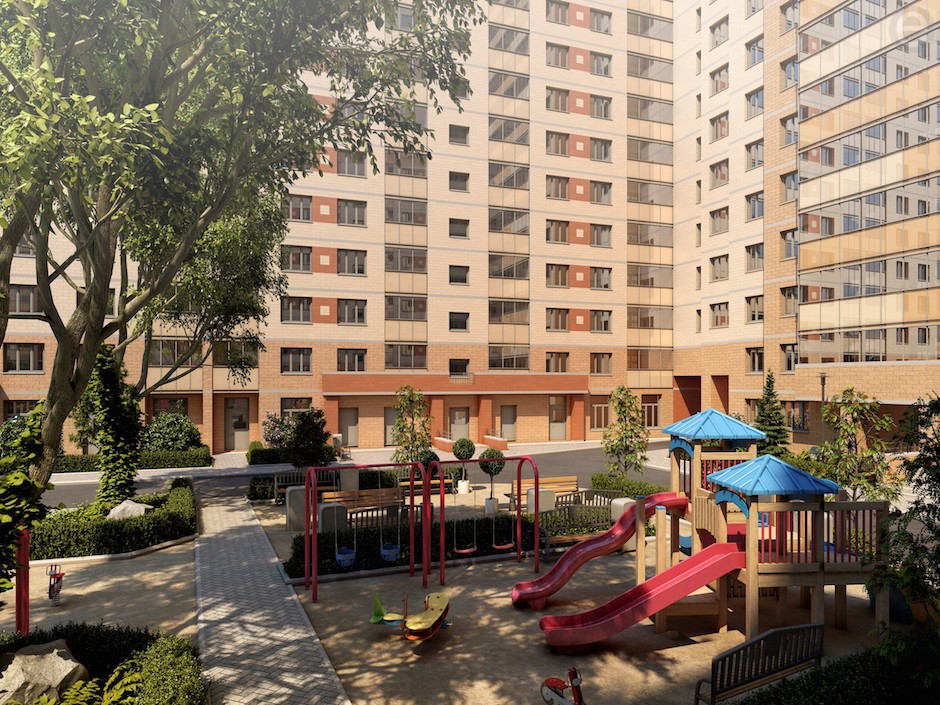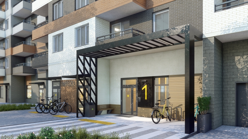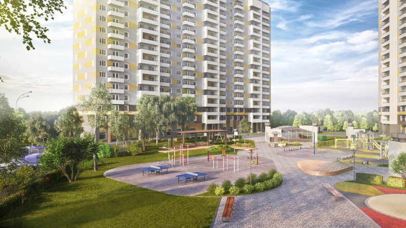 На территории жилого комплекса будут оборудованы площадки для прогулок с детьми и занятий спортом. Первые этажи ID Кудрово будут отведены под коммерческие помещения: аптеки, кафе и магазины.